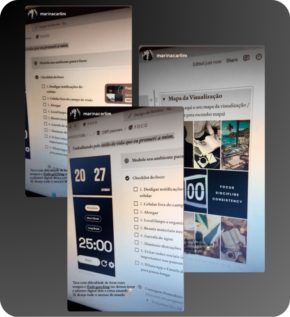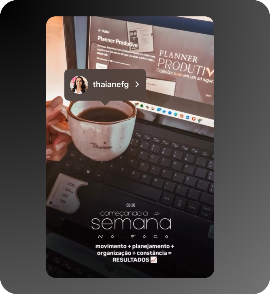 Sou apaixonada por desenvolvimento pessoal e profissional e estudo há anos produtividade, comportamento e autogestão. Hoje, meu trabalho é te guiar a organizar a vida com inteligência, conectando foco, bem-estar e execução para que você alcance seus objetivos com clareza e consistência.